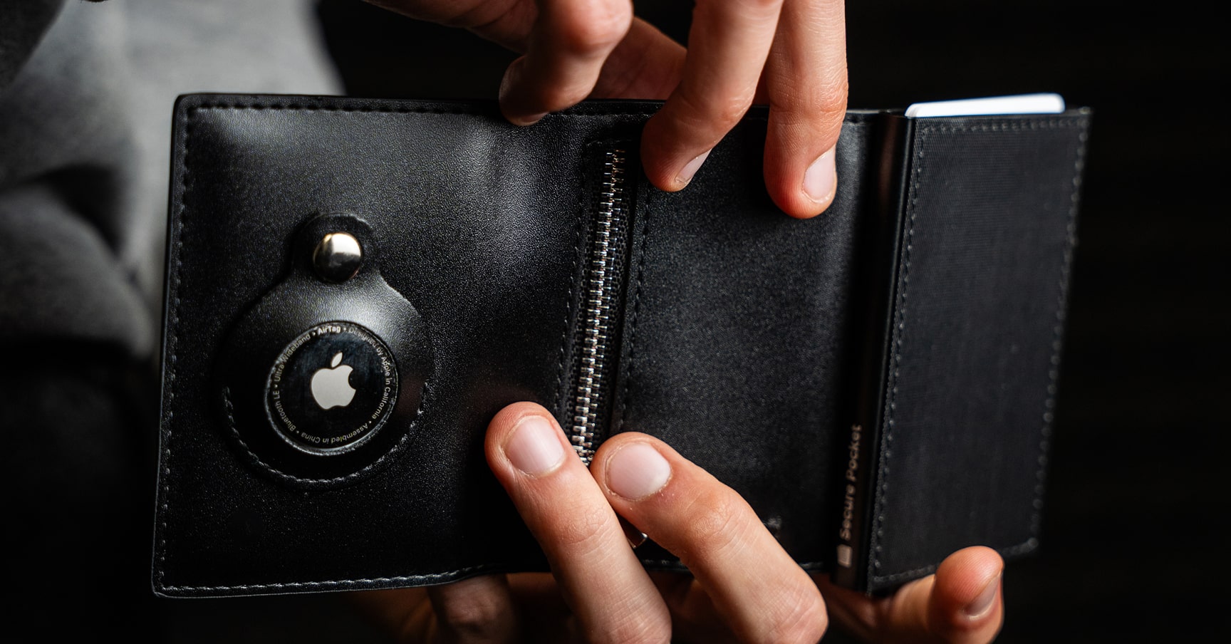 Il sistema di protezione RFID impedisce la clonazione e la lettura delle tue informazioni sensibili. Inoltre, il supporto per AirTag ti permette di localizzare il portafoglio in caso di smarrimento.